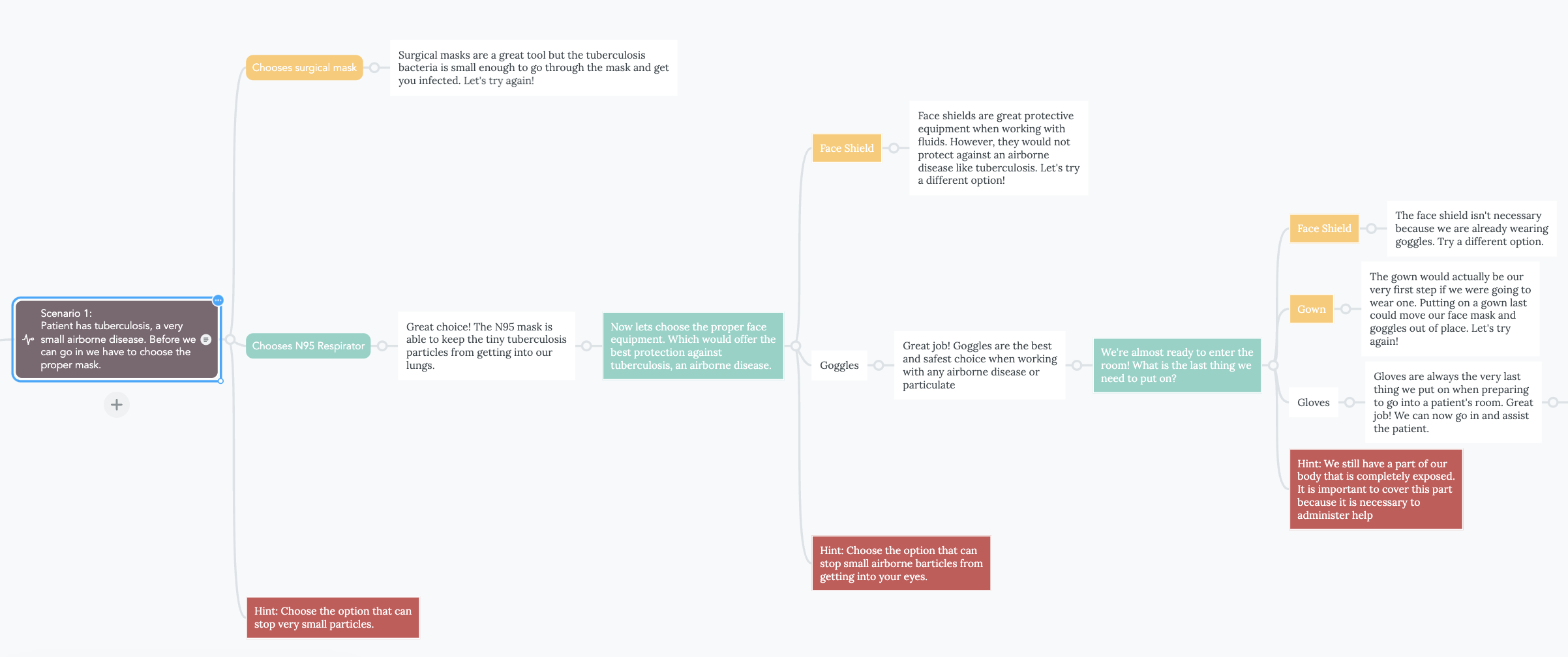 A scenario-based eLearning project for newly hired hospital staff to learn and practice the skills necessary to safely assist patients with infectious diseases.